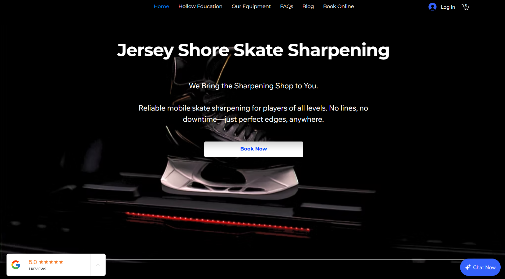 Built a complete online presence for a new mobile skate sharpening service. Includes online booking, service area mapping, and customer management - launched and generating bookings within 3 weeks.